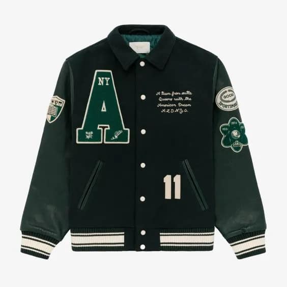 Wholesale Premium Custom Patch Green Varsity Jacket with Collar